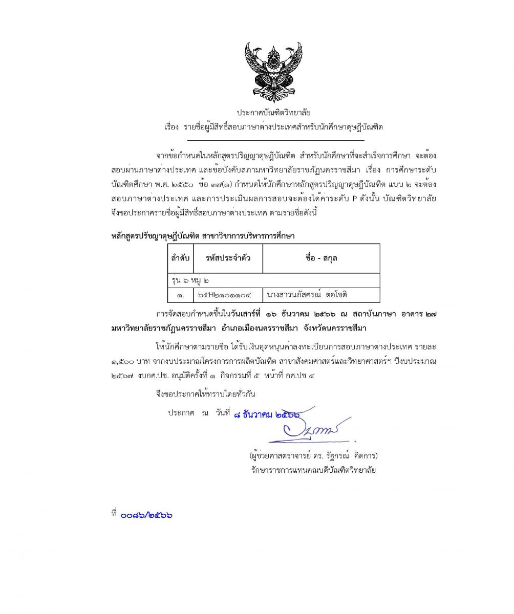 รายชื่อผู้มีสิทธิ์สอบภาษาต่างประเทศสำหรับนักศึกษาดุษฎีบัณฑิต